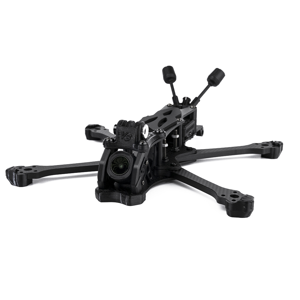 Pro maximální pevnost jsou ramena vyfrézována z 5,5mm karbonu Toray T700. Přední držák kamery je z odolné slitiny hliníku 7075, přičemž kamera je uchycena přes měkké softmounty, které tlumí vibrace. Rám pojme stacky s roztečí montážních děr 30,5×30,5 mm i 20×20 mm. V zadní části je prostor pro video vysílač s montážní roztečí 20×20 mm nebo 25,5×25,5 mm. Součástí rámu je také hliníkový chladič, který zajišťuje efektivní odvod tepla z video vysílače.