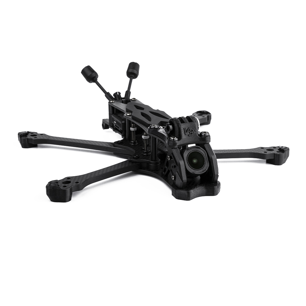 Pro maximální pevnost jsou ramena vyfrézována z 5,5mm karbonu Toray T700. Přední držák kamery je z odolné slitiny hliníku 7075, přičemž kamera je uchycena přes měkké softmounty, které tlumí vibrace. Rám pojme stacky s roztečí montážních děr 30,5×30,5 mm i 20×20 mm. V zadní části je prostor pro video vysílač s montážní roztečí 20×20 mm nebo 25,5×25,5 mm. Součástí rámu je také hliníkový chladič, který zajišťuje efektivní odvod tepla z video vysílače.