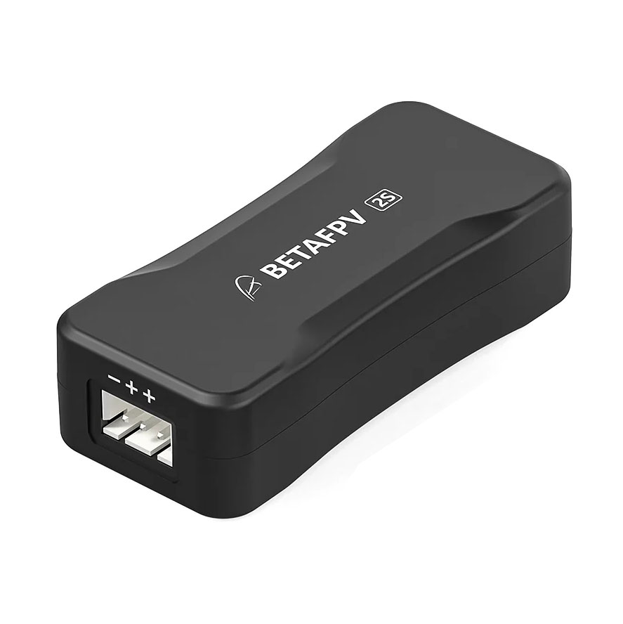 Kompaktní jednoduchá nabíječka a měřák napětí od BetaFPV pro 2S LiPo baterie. Nabíječka má standardní JST-XH konektor pro připojení balančního konektoru baterie. Po připojení baterie se automaticky spustí nabíjení a není tak potřeba se o nic starat. Nabíječka je určena pro klasické Lipo baterie s koncovým napětím 8.4V. Kromě samotného nabíjení poslouží také jako tester, kdy při připojení baterie umožňuje změřit celkové napětí baterie i jednotlivých článků. Hodnoty se zobrazují na displeji, který zároveň indikuje stav nabíjení.