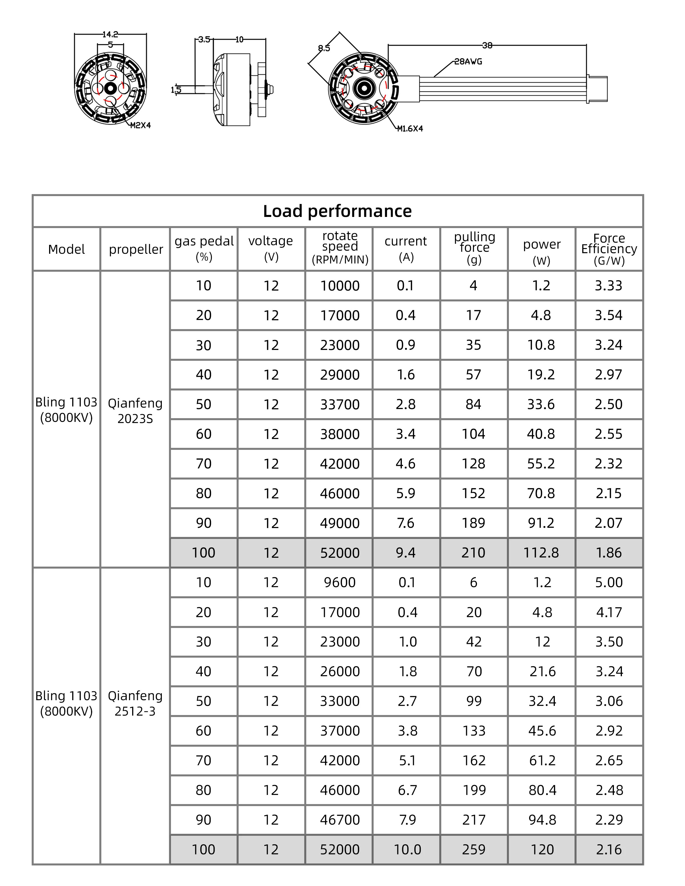 DarwinFPV Bling 1103 je motor vhodný pro malé 2–2,5″ toothpick drony v kombinaci s 2-3S Lipo baterií. Motor používá silné magnety N52H, kvalitní NSK ložiska a měděné vinutí s tepelnou odolností až 220 °C.