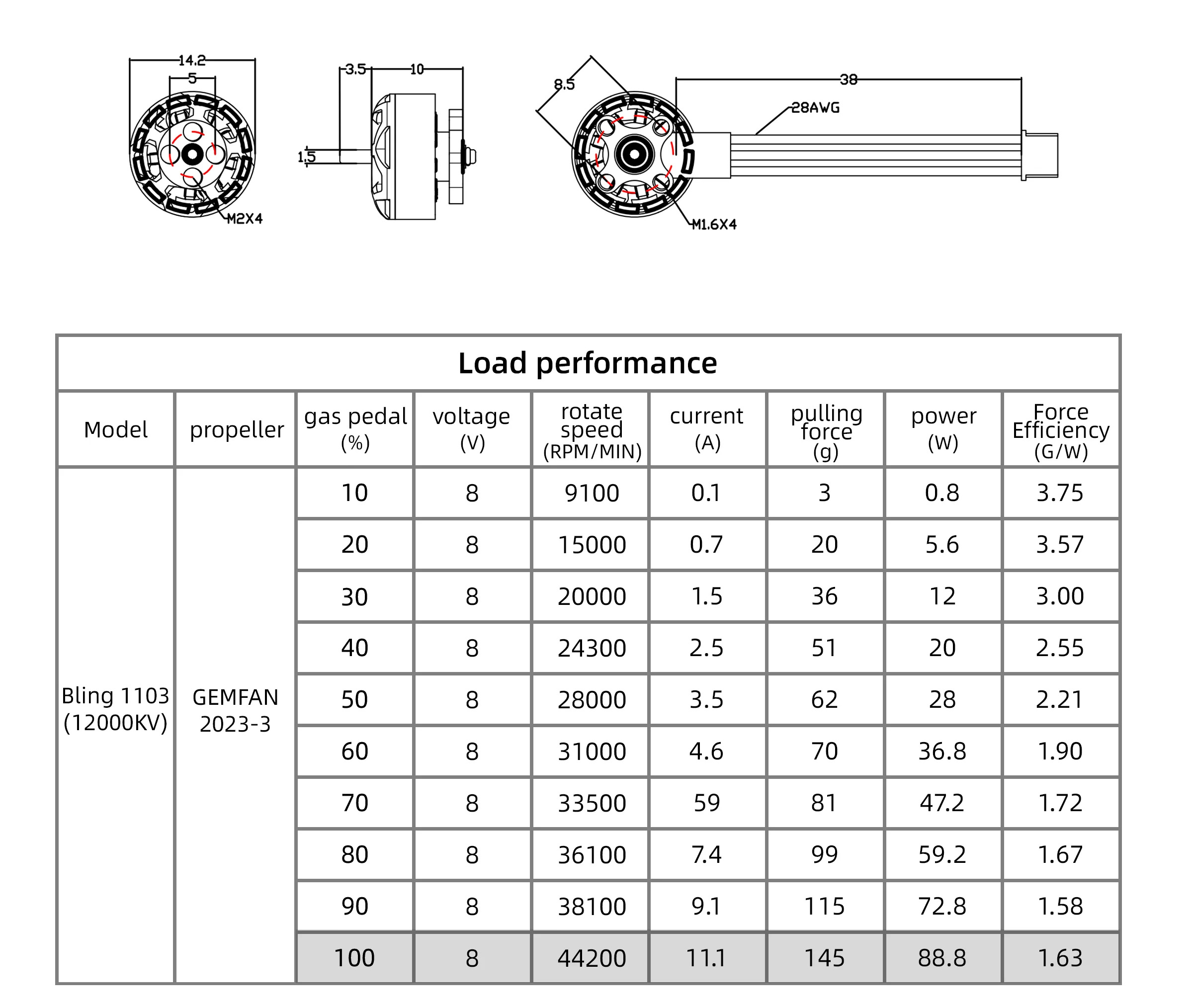 DarwinFPV Bling 1103 je motor vhodný pro malé 2–2,5″ toothpick drony v kombinaci s 2S Lipo baterií. Motor používá silné magnety N52H, kvalitní NSK ložiska a měděné vinutí s tepelnou odolností až 220 °C.