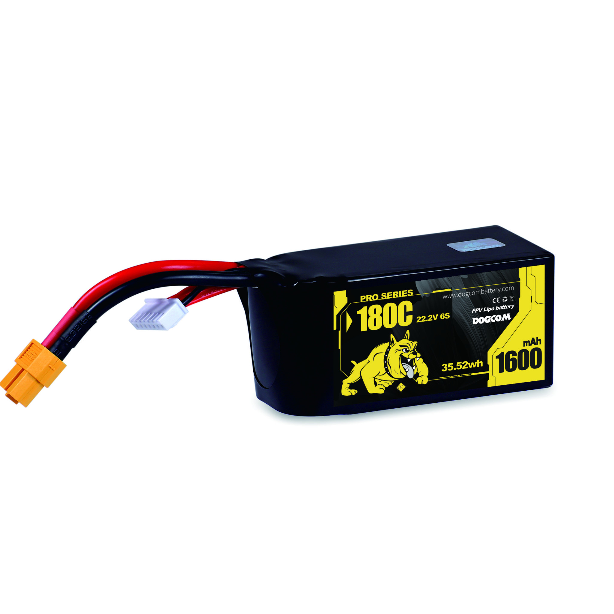 Dogcom je relativně mladá značka výkonných baterií pro FPV drony, která si dává za cíl nabídnout ty nejlepší baterie na trhu. Dogcom 1600mAh 6S je Lipo baterie s XT60 konektorem a velkým vybíjecím proudem a nízkou hmotností vhodná pro velmi výkonné 5" závodní či freestylové drony.