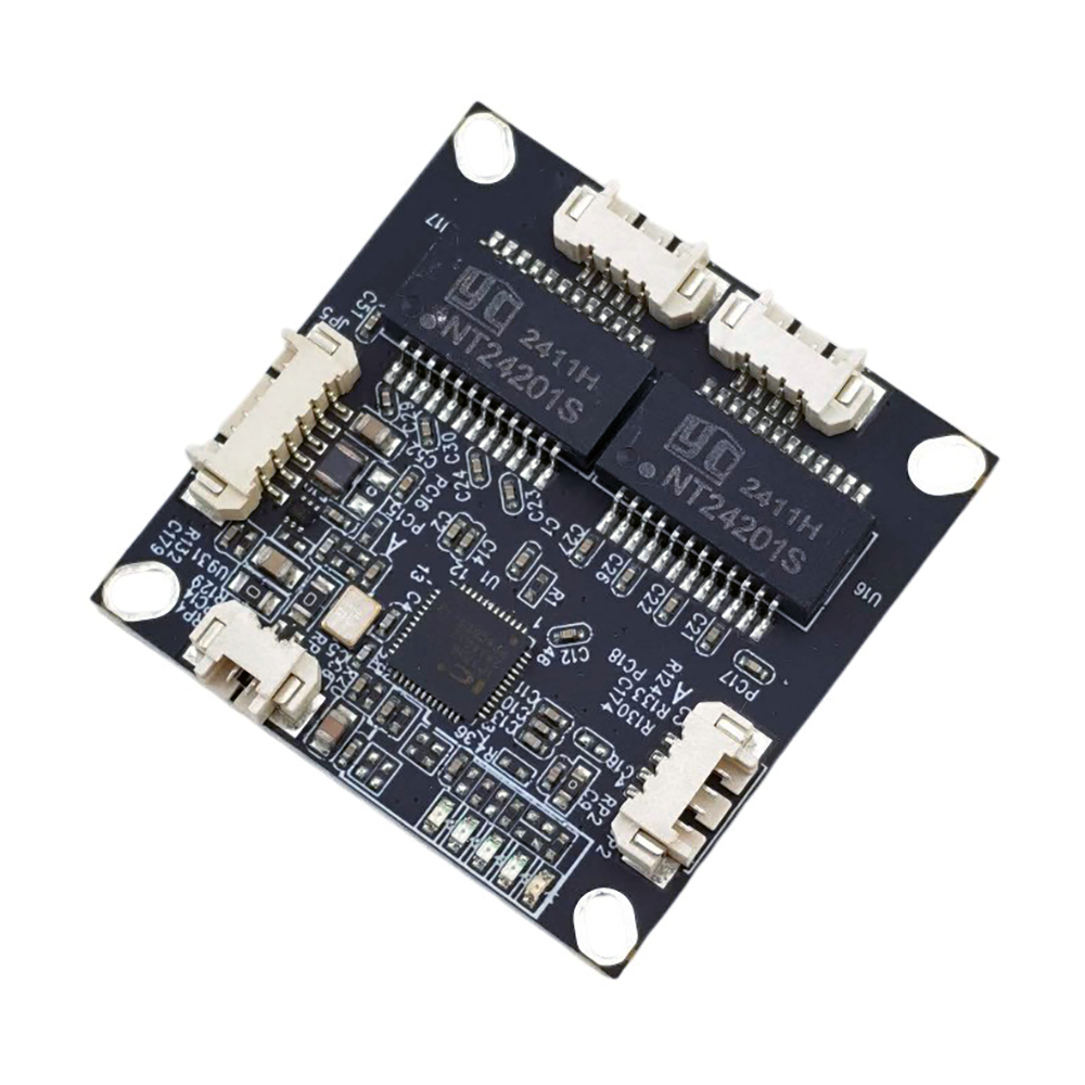 Ethernet Switch 4port 10/100M je kompaktní síťový switch určený pro integraci do embedded systémů, robotů nebo dronů. Nabízí 4x 10/100 Mbps Ethernet port s automatickou detekcí rychlosti a podporou Auto MDI/MDIX, takže není nutné řešit typ kabeláže. Napájený je 12V DC.