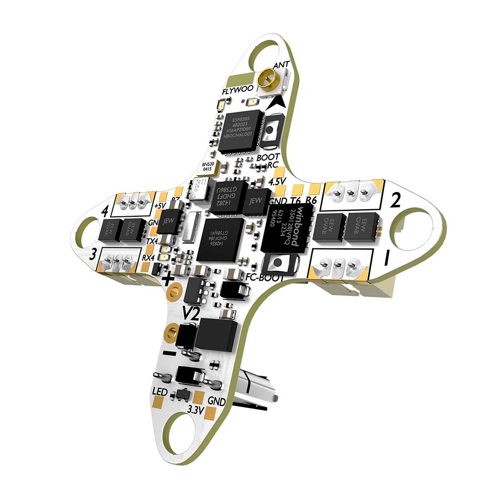 Řídicí jednotka používá STM32F405 mikroprocesor v kombinaci s gyrem ICM42688P. Dále disponuje 8MB pamětí pro blackbox a barometrem pro měření výšky. Regulátory používají firmware Bluejay, zvládnou proud 5A a jsou tak vhodné pro motory 0702–0803. Pro snadné připojení motorů jsou k dispozici konektory.