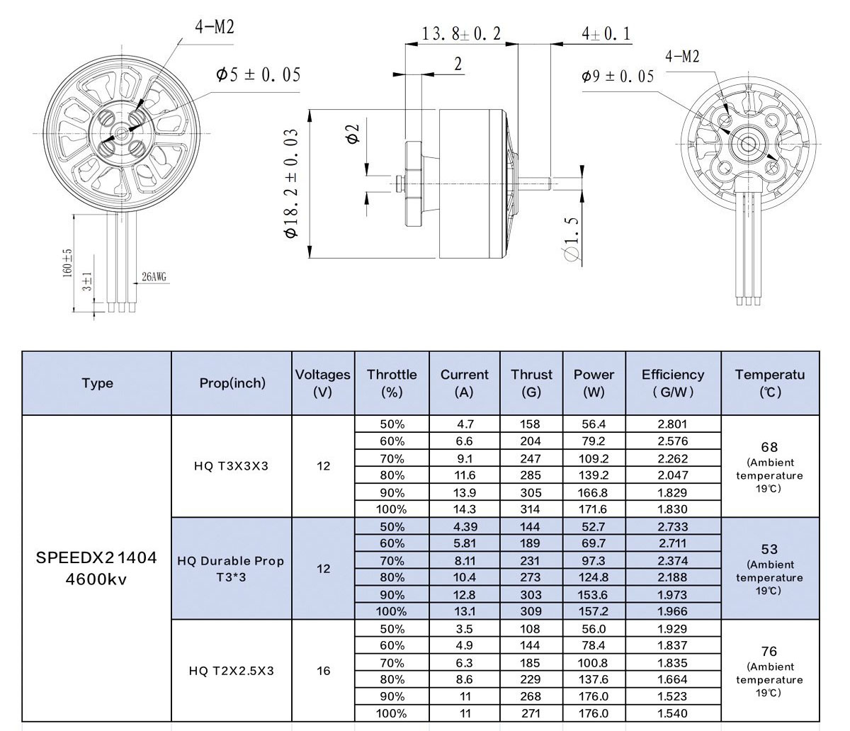 Geprc SpeedX2 1404 4600Kv je motor vhodný pro 2–3″ drony v kombinaci se 3–4S baterií. Motor používá kvalitní oblé magnety N52H, NSK/NMB ložiska a je vinutý jedním drátem.