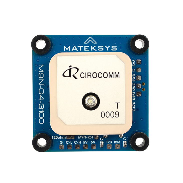 Matek M9N-G4-3100 je přesný GNSS modul s kompasem určený pro použití na dronech s firmware Ardupilot nebo iNav. GPS modul používá M9N přijímač, který dokáže sledovat více systémů najednou. Podporuje GPS, Galileo, GLONASS i BeiDou. GPS přijímač používá anténu o velikosti 25 × 25 mm. Modul obsahuje průmyslový magnetometr RM3100, který se vyznačuje vysokým rozlišením, minimální hysterezí a vysokou dynamickou odezvou.