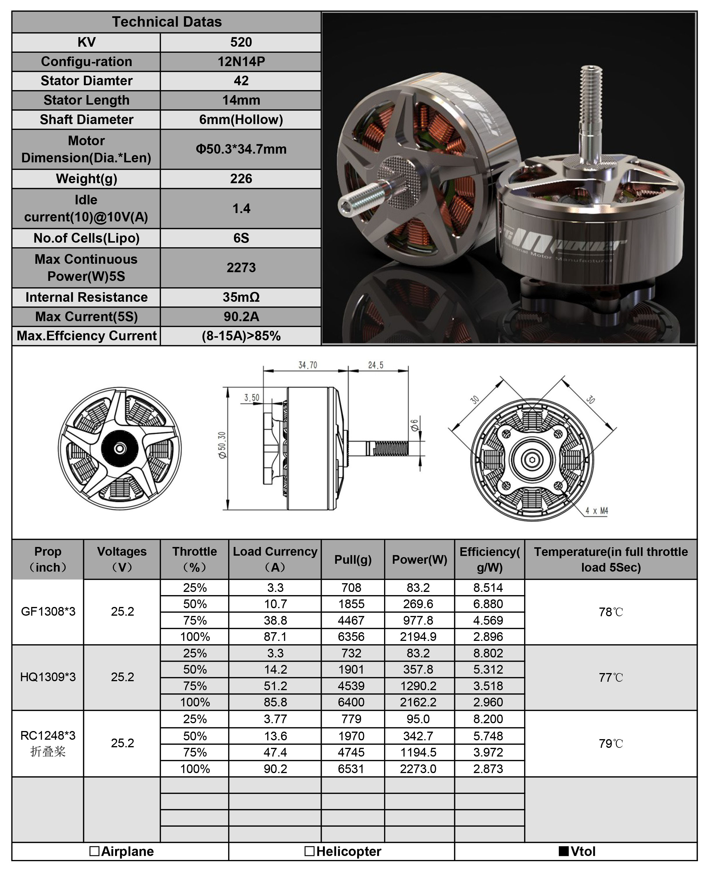 RCinpower EX4214 velký motor od renomovaného výrobce RCinpower. Motor je vhodný pro long-range 13" drony v kombinaci s 6S baterií, kdy nabídne solidní výkon a dobrou kvalitu zpracování za přijatelnou cenu.