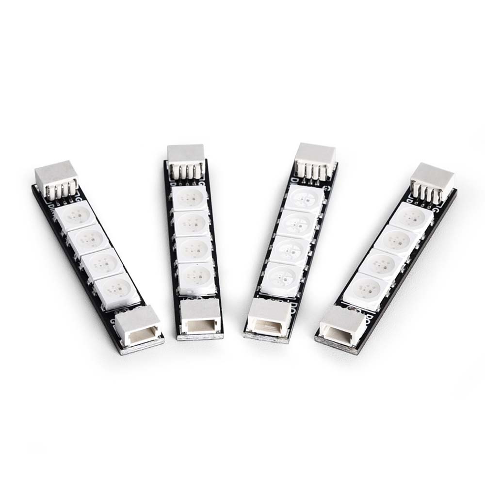 Sada 4 ks LED pásků pro uchycení na ramena dronu. LED pásky jsou programovatelné a každou LED diodu lze nastavit přes řídicí jednotku dronu. Pásky jsou vybaveny konektorem pro snadné zapojení bez nutnosti pájení. Pro příznivce pájení jsou však k dispozici i pájecí pady. Pásek je napájený 5V. Na každém pásku jsou 4 diody velikosti 5050.