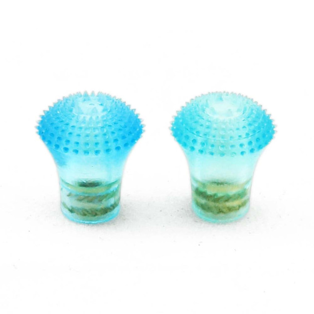 Alternativní koncovka kniplů pro RC vysílačky. Díky vroubkování drží koncovky na prstech a nekloužou. Protože jsou koncovky vyrobeny z plastu, oproti některým hliníkovým koncovkám neřežou do prstů.